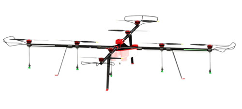 整机一体化设计,首创十字八旋翼可折叠飞行平台,采用羽人专利技术十字搭接,整机质量轻,负载能力强,抗风性能好;机体工作时呈十字前后飞行,拓宽了挂载设备的有效性。