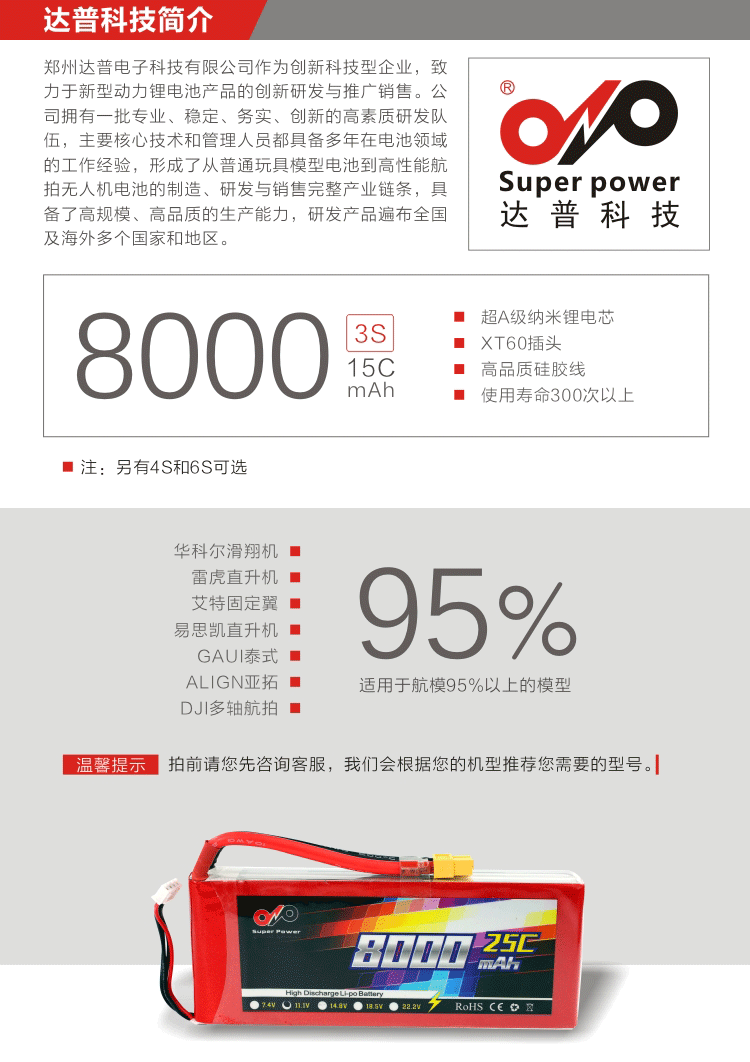 达普电子 彩虹8000mAh 3s4s6s