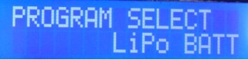 Connect the power supply, display the main menu, press the up and down arrow keys, then select PROGRAM SELECT LiPo BATTERY main interfae in the main menu.