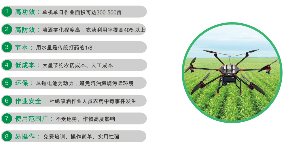 | 5 | 作业高度(m) | 0.5~3.0 | 离作物高度 |