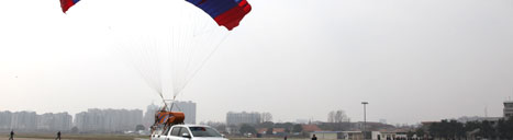 人工消减雾霾柔翼无人机以柔翼无人机为搭载平台,当需要进行消减雾霾作业时,人工消减雾霾柔翼无人机通过内置或外挂检测探测设备和催化剂播撒设备,由牵引车快速机动至预定场地,牵引车短距离牵引起飞,由地面人员操纵在低空、超低空遥控或自主飞行至播撒区域进行消减作业,完成任务后可遥控或自主归航降落,经过重新检测和加装催化剂后,可继续起飞进行消减雾霾作业直至达成消减雾霾目的,全部工作完成后能自主归航和精确着陆。人工消减雾霾柔翼无人机具有载重量大、飞行时间长、飞行高度跨度大、使用安全以及成本低等优点,是一种新型的飞行消减雾霾无人航空器。