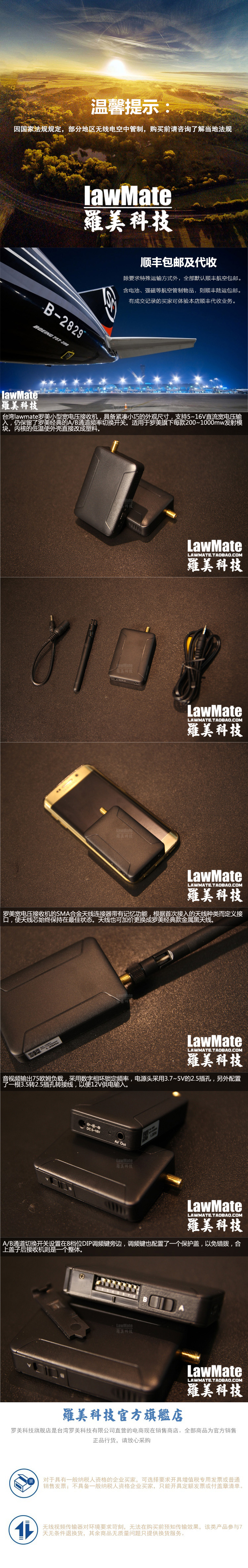 lawmate罗美科技1W无线视频接收机5~16V宽电压FPV航拍监控图传