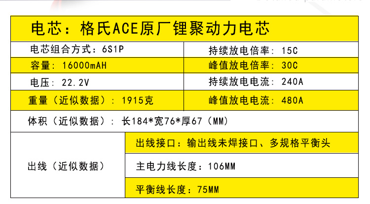 植保无人机测绘电力巡线无人机电池16000mAh 6S