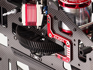 全新侧板增强片与增强块设计,有效提升机身结构与抗扭强度,在剧烈的3D飞行时就能感受到机身强度提升的扎实感。增强片外观是与850MX马达一样亮红色阳极处理,巧妙衬托出T-REX800E PRO的高质感。