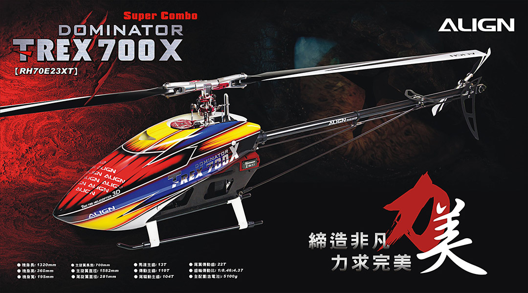 崭新的亚拓T-REX 700X 是专为追求高效能3D飞行爱好者,所量身打造的旗舰机款。