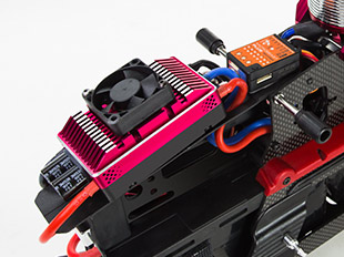 外观亮红处理的CNC机身增强片,除了强化机身结构外,并具有明显马达温度散热能力,平均每趟飞行降低可达20°C以上效果。