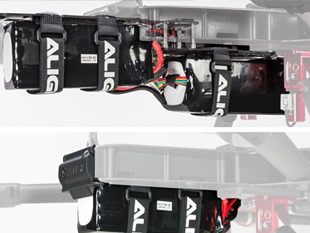 可快拆电池板与电池滑轨,更换电池一手快速搞定。双层设计的电池板, 电池可使用一颗6S 22.2V 12,000mAh以内(需配合电池舱尺寸),或是同时安装两颗6,000mAh容量以内电池,电池可弹性选择使用与调整机体重心。