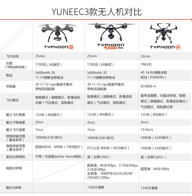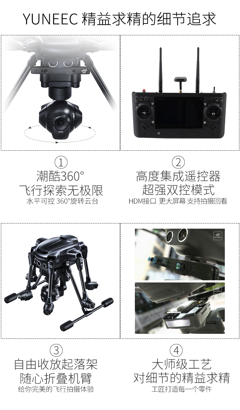 YUNEEC昊翔六轴飞行器 无人机航拍高清专业智能避障台风h480 4k