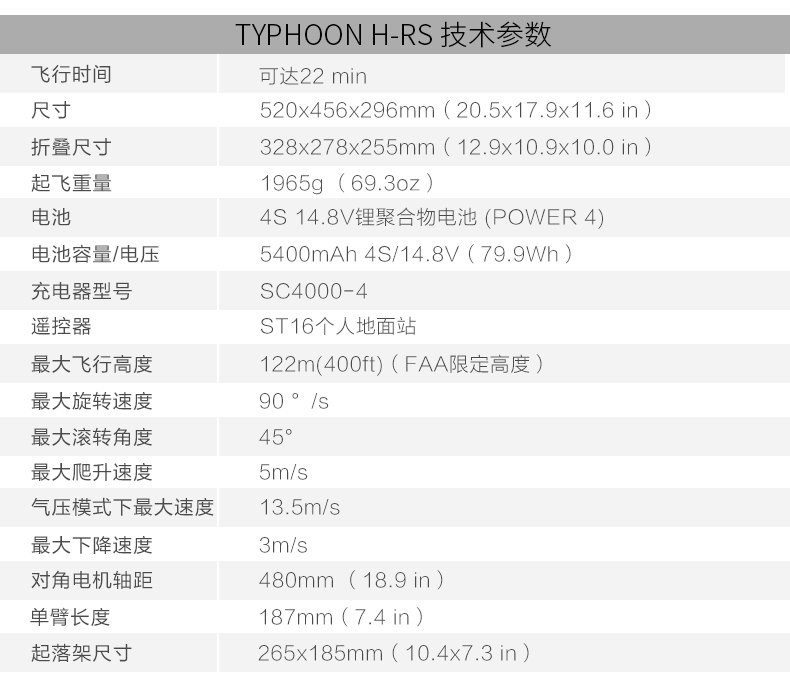 YUNEEC昊翔 四轴飞行器 台风g 无相机 智能专业遥控 航拍无人机