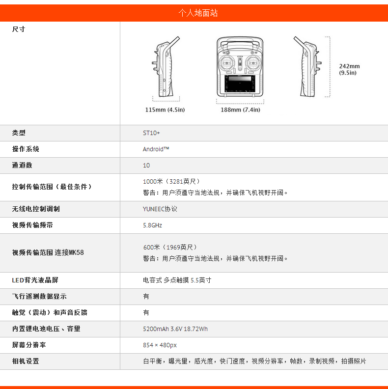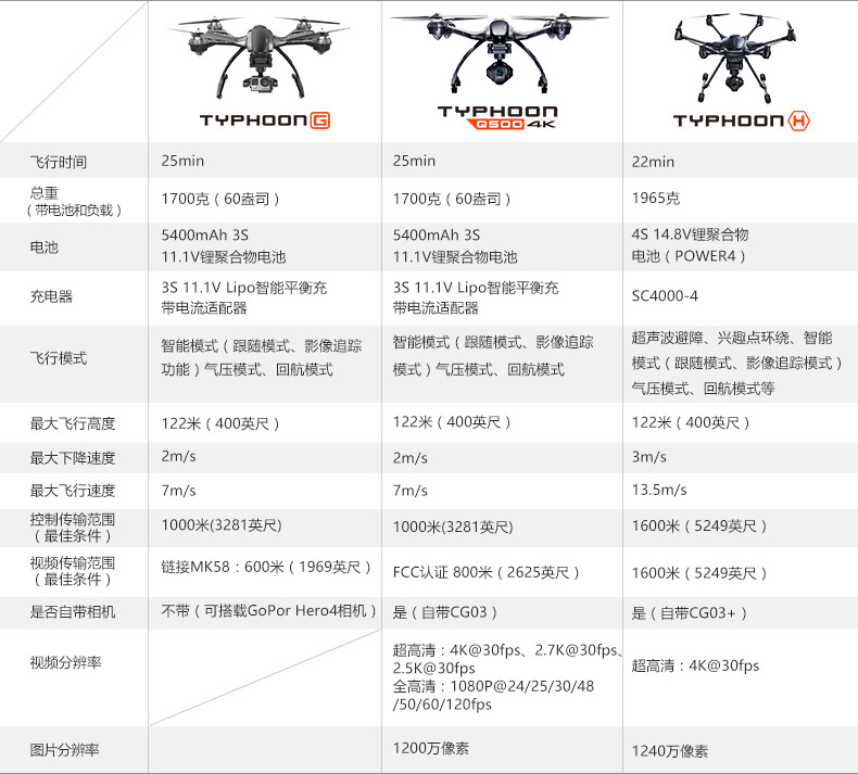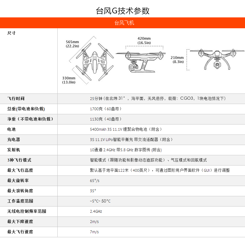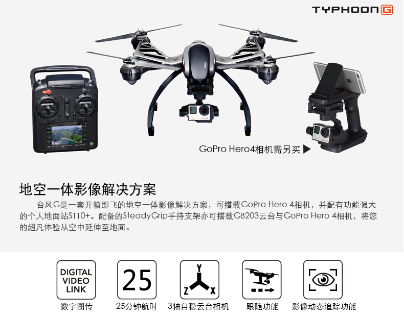 YUNEEC昊翔 四轴飞行器 台风g 无相机 智能专业遥控 航拍无人机