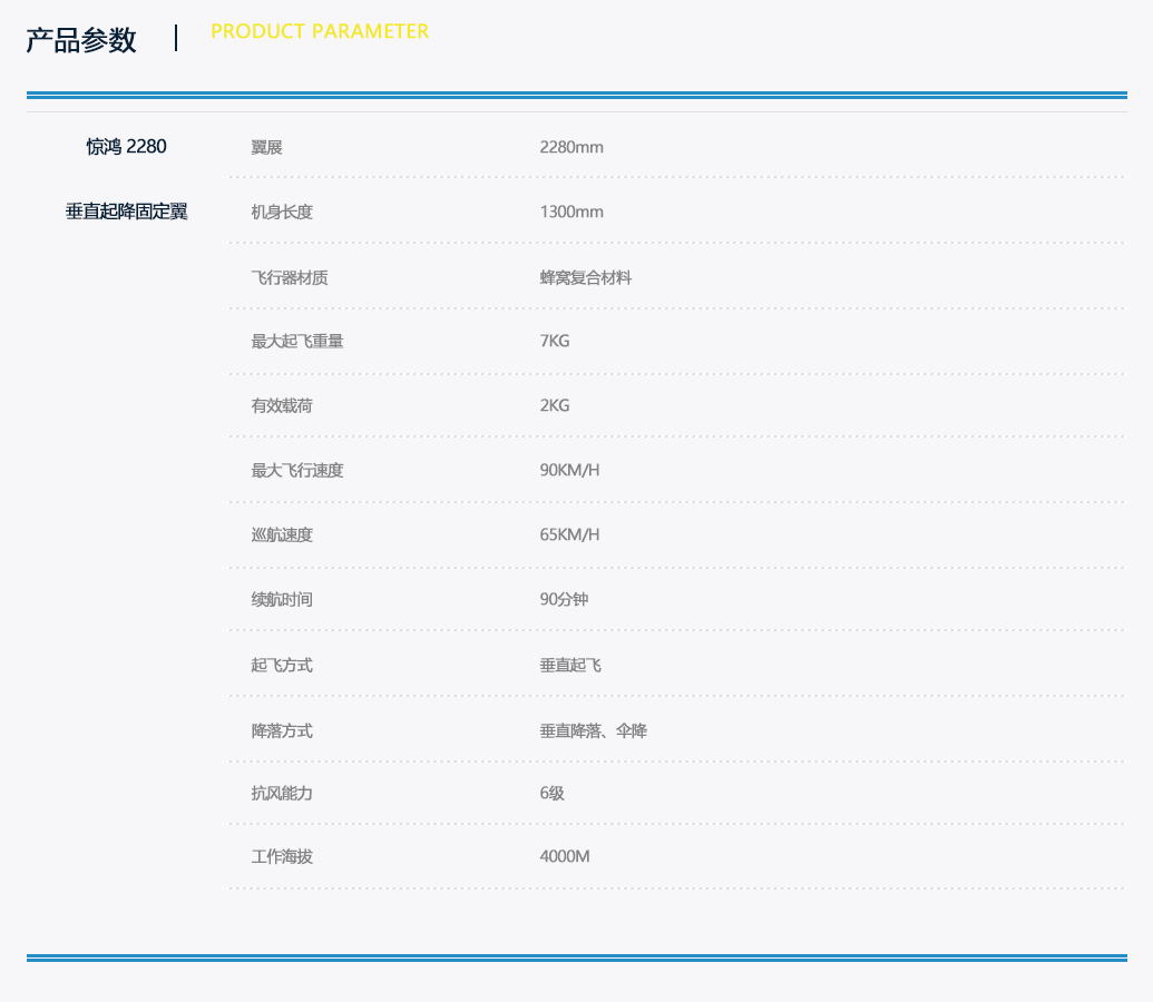 翔鸿 惊鸿系列—电动固定翼无人机2280