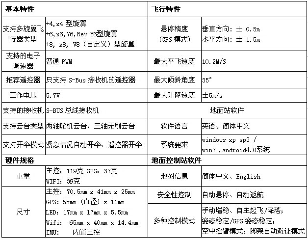 使用高精度气压传感器,测量精度10cm,使用卡尔曼滤波推算姿态和垂向速度,控制精度在20cm。本系统可以锁定经纬度和高度精确悬停,即使是在风较大的情况下,也同样可以在较小的范围内稳定悬停。精度可以达到水平小于1.5米,高度小于0.3米。