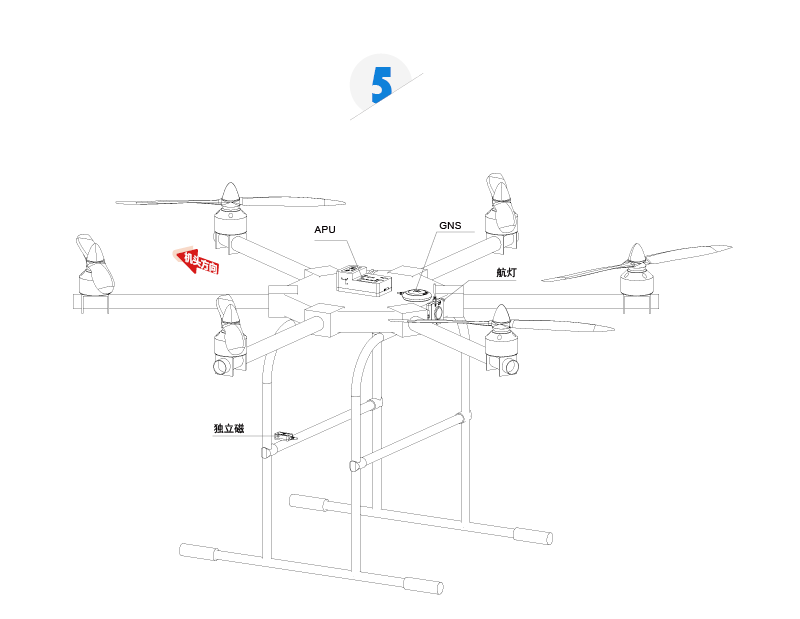 磁罗盘冗余备份,降低机体磁干扰,保证飞行航向的准确。