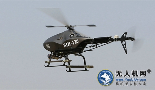 SDI-120大载重无人直升机采用单旋翼带尾桨的常规气动布局,配备水冷34马力转子发动机,油耗率介于活塞发动机的2~4冲程之间,因此转动平稳,振动小。SDI-120控制方面使用抗干扰性较强自适应鲁棒控制,保证飞行的精度和安全。