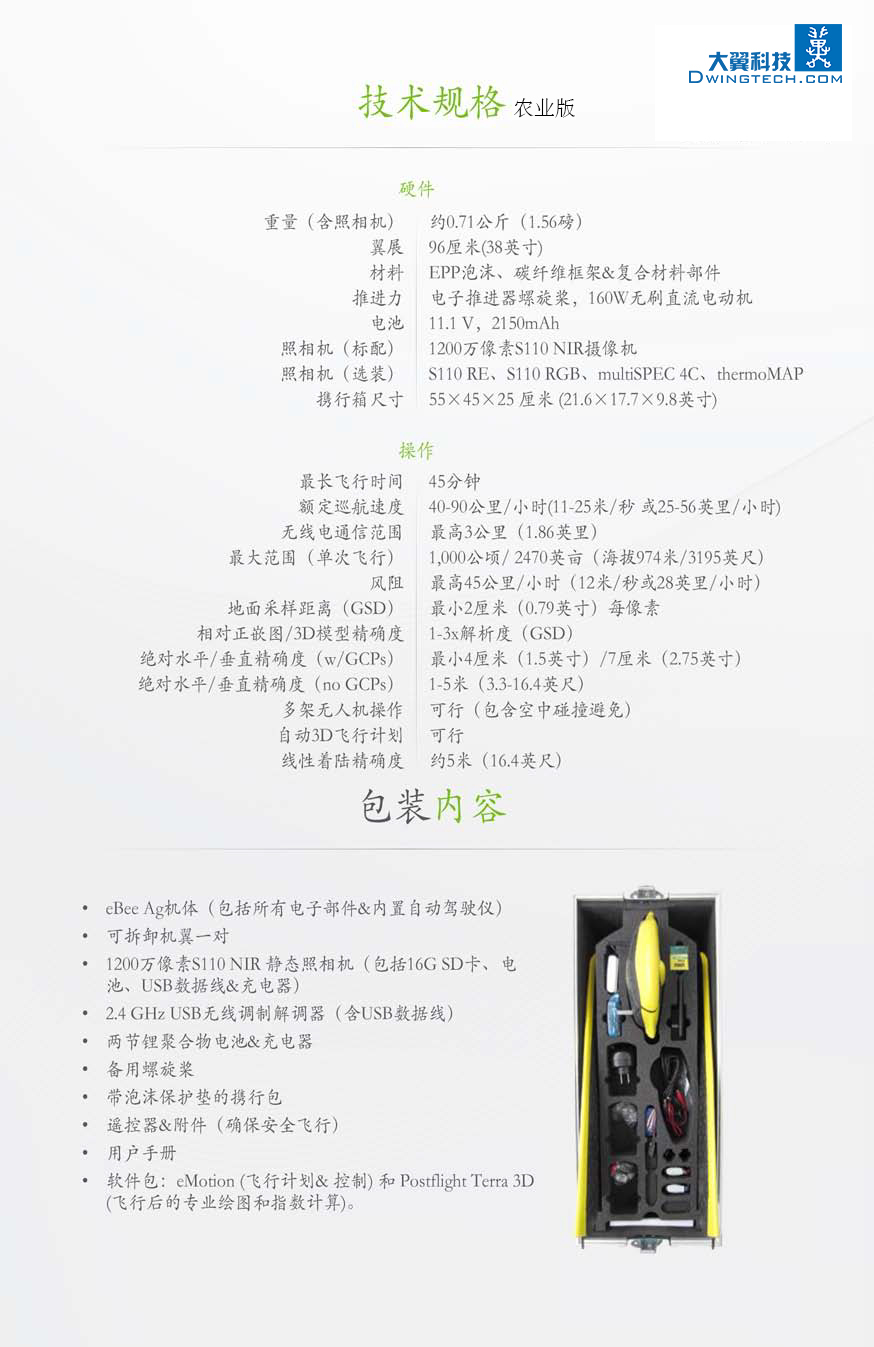 别无所求 eBee提供一个坚固的手提箱以及两款软件包:eMotion(飞行规划及控制)和Pix4Dmapper(选配,专业摄影测量处理软件)。