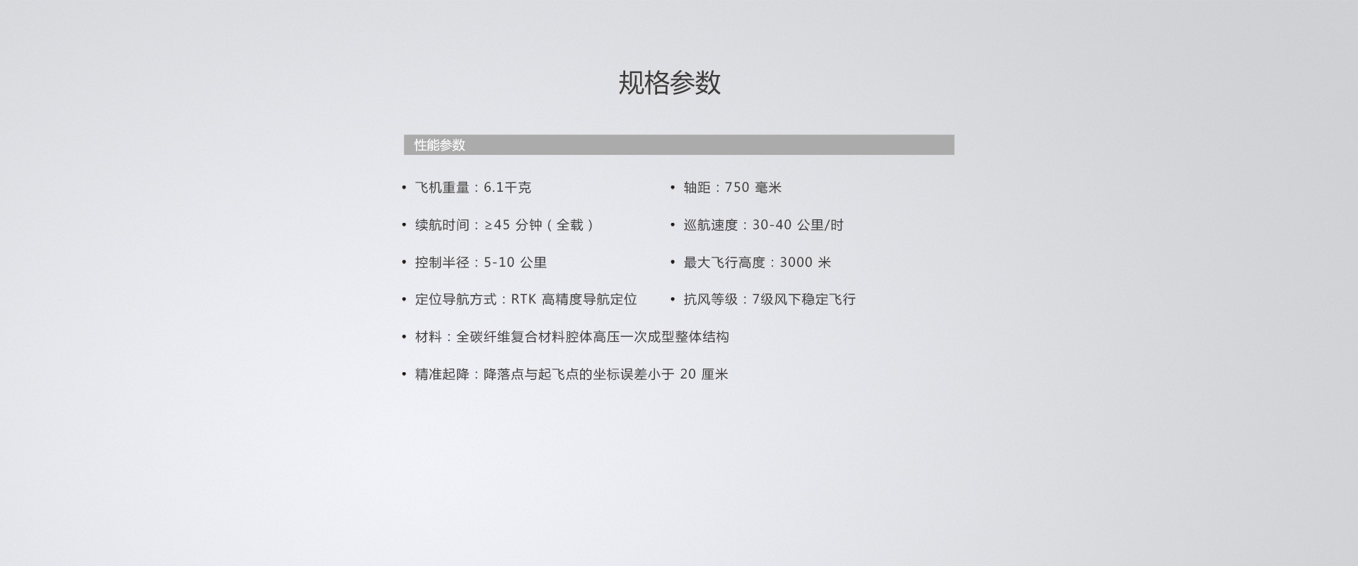 具有高精度姿态航迹控制性能, 抗扰动稳定度高,通过智能飞行系统控制飞行精度和稳定性, 降低飞行时中心和重量变化的影响。 在自主飞行模式下,遇到侧风可自动修正航向,保持预设飞行航线。