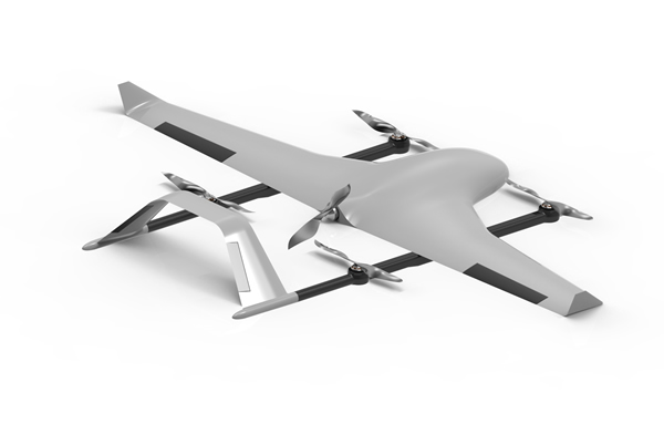 一体化混合布局设计,即保留了旋翼机可垂直起降,空中悬停的优势,又保留了固定翼飞机飞行速度快、有效航程远、飞行平稳的特点。