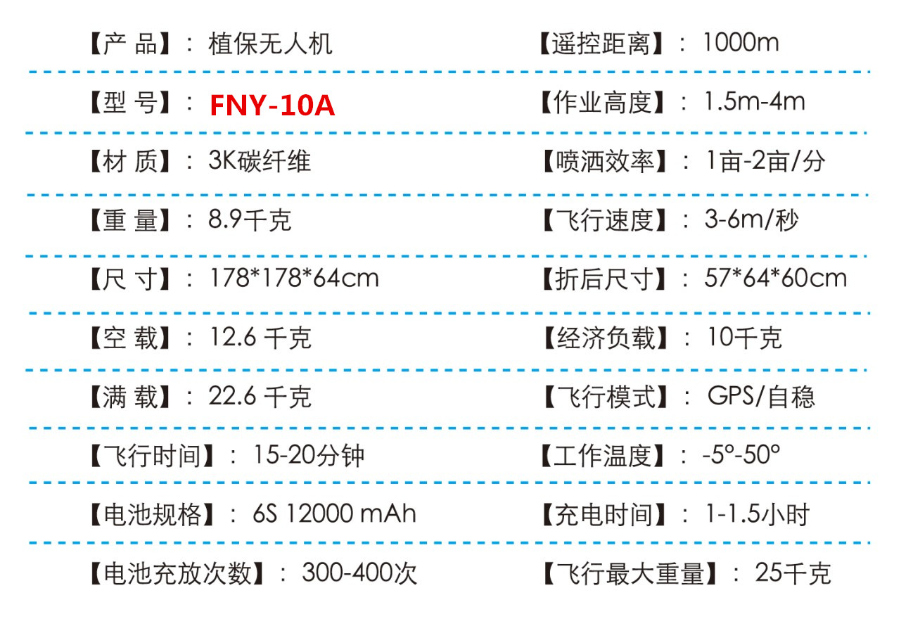 农业植保无人机,专为农作物保护领域设计研发,耐用效率好,植保效率高;纯碳纤维制作, 电机运转寿命长达1000小时。在低空喷洒农药,每分钟可完成一亩地的作业,喷洒效率是传统人工的30倍。