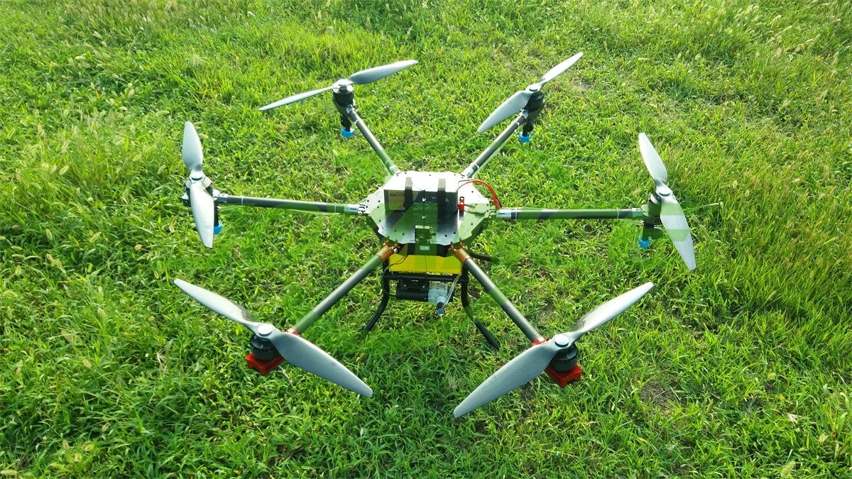 六轴设计,保证飞机安全及平稳性;多电机分担载重,保证机器能长时间连续作业。