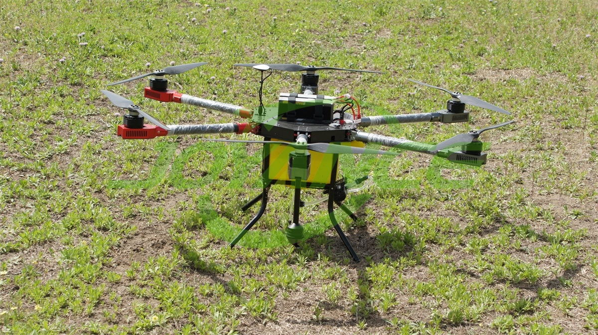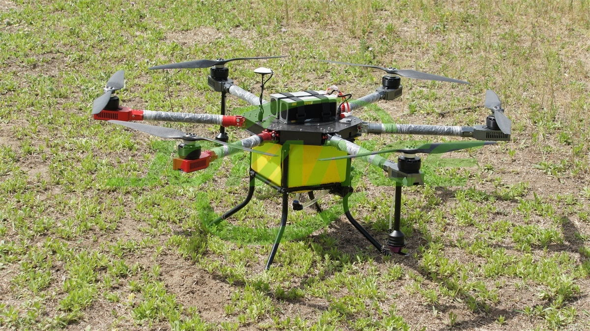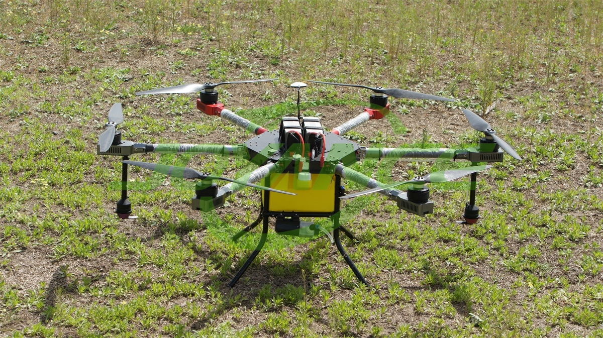 六轴设计,保证飞机安全及平稳性;多电机分担载重,保证机器能长时间连续作业。