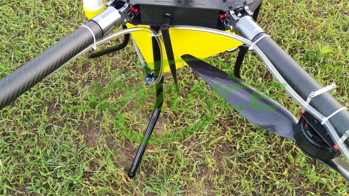 六轴设计,保证飞机安全及平稳性;多电机分担载重,保证机器能长时间连续作业。