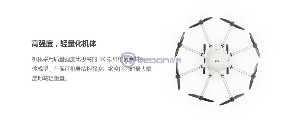 云动八旋翼工业级无人机,是一款集长航时,大载重,飞行稳定,可靠性强的专业级无人机。机体采用质量强度比极高的碳纤维材料一体成型,V型八轴扁平化低风阻升力体紧凑设计,可以有效的减少空气阻力,飞行稳定,荷载大,可靠性强。支臂可快速拆装便于运输。全新的上盖防雨水设计在微雨天也可正常作业。大容量电池保证较长的作业时间。同时,其地面站可进行精准的航线规划,强大的实时图传,并从空中反馈出飞机的各种飞行参数回来,充分保证其安全性,和状态可视化程度。