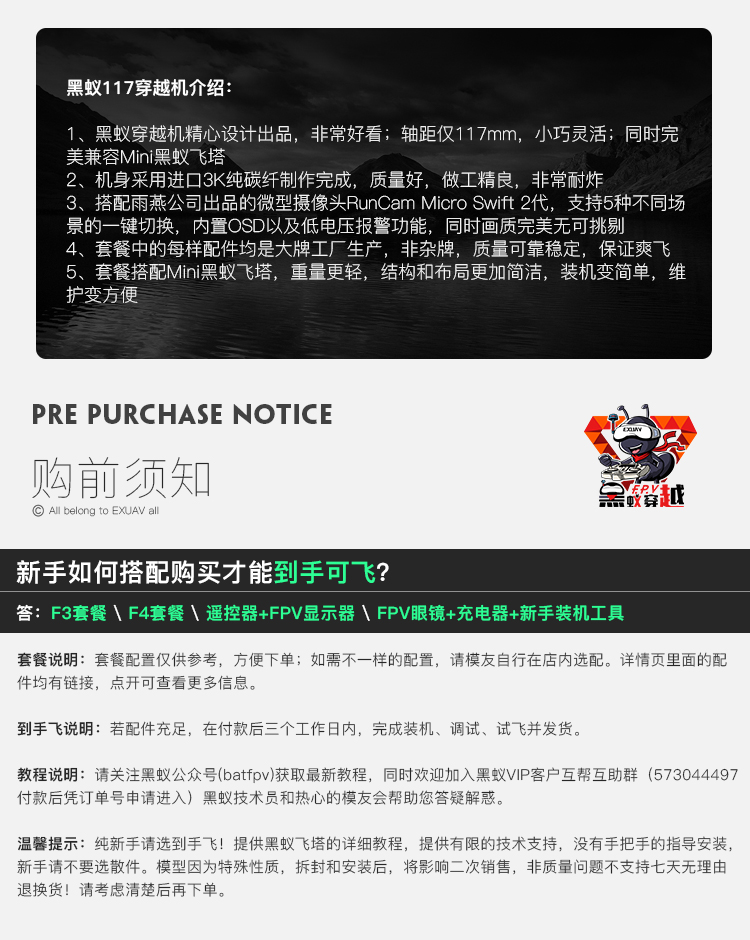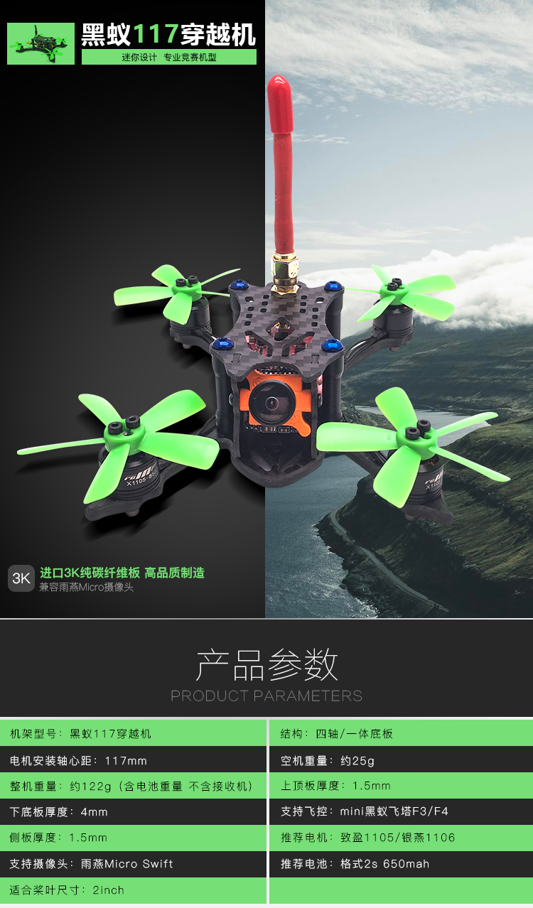 黑蚁117穿越机 到手飞套机 小巧灵活 动力十足 易上手 4mm底板