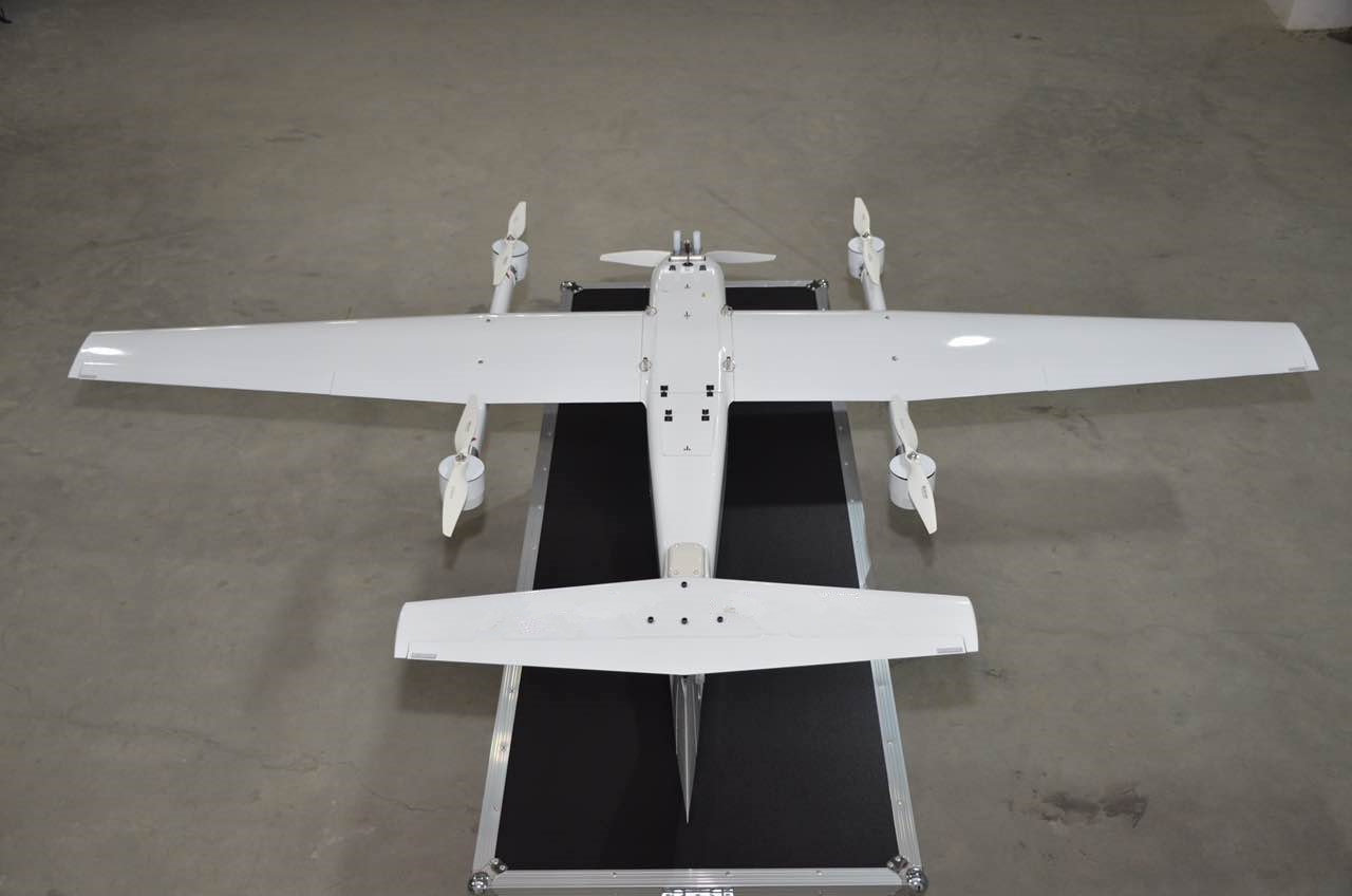 AH-6神鹏是我公司研发的复合翼垂直起降无人机,采用固定翼结合四旋翼的复合翼布局形式,
