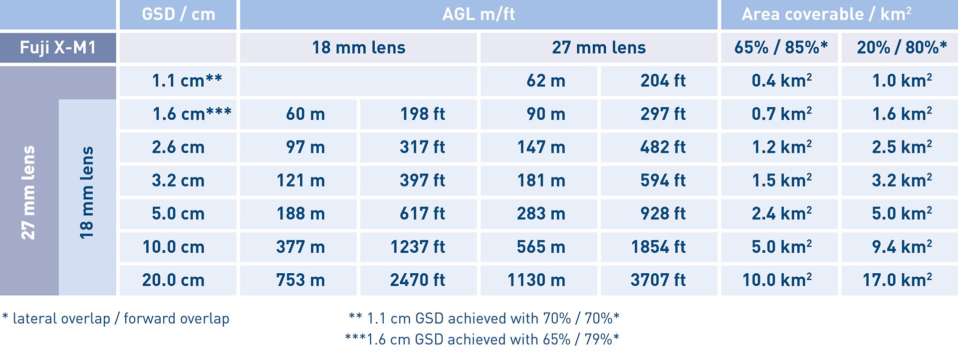 27 mm镜头可提供最高的分辨率。根据所需的细节识别,您将收到GSD低至1.1厘米的数据。