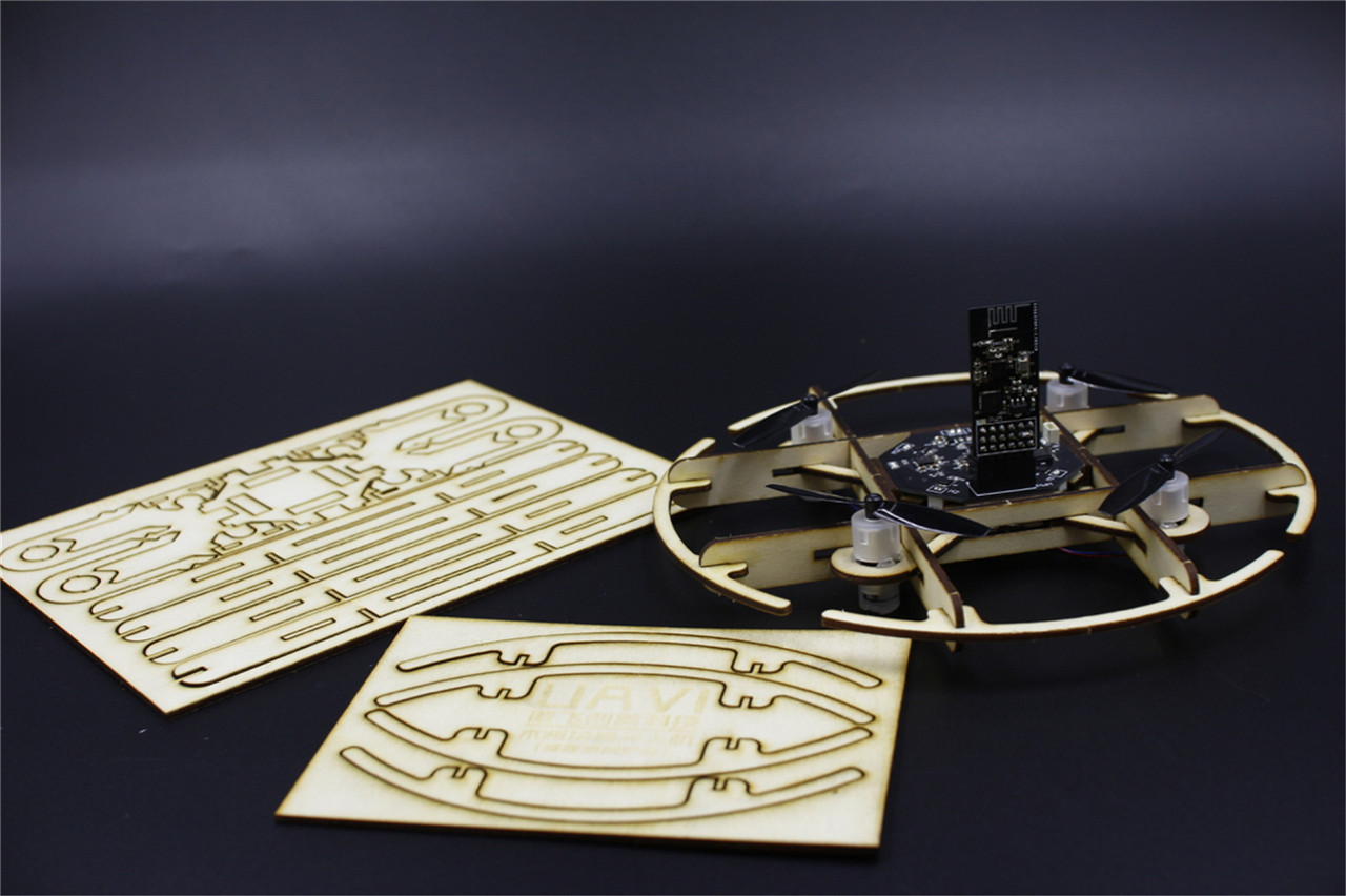 本产品是一款木板拼装无人机。采用模块化设计,富有拼装乐趣。本机选用优良材质并通过工程学优化设计,小巧灵活,安全稳定,耐摔耐撞,性能卓越,能满足玩家各种飞行技巧需求。