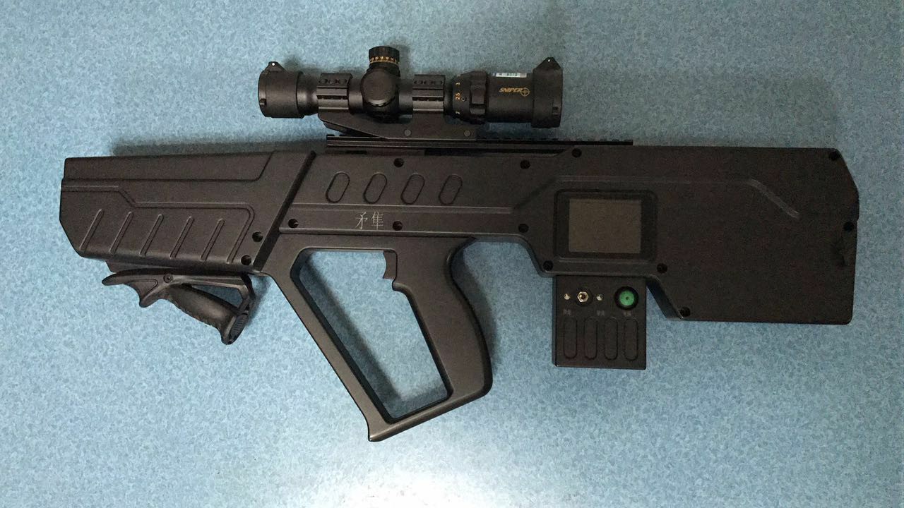 矛隼是一体散热 单兵枪型外观, 通过发 射定向的大功率干扰射频,切断无人机与遥控器之间的通讯,迫使无人机原地降落或返回起点。针对国内外不同频段的无人机,矛隼拥有四段有效管制频段,每频段单设一个开关可根据实际环境及情况选择开关。机身有四个相对应频段工作检测灯,可检测模块工作是否正常。