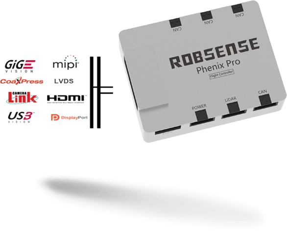 强大的扩展能力作为业界第一款全可编程工业级飞控,Phenix Pro 可以快速扩展IO和通信协议接口,包括Camera Link、LVDS、CAN等。当普通飞控无法扩展3个以上外围设备(传感器)时,Phenix Pro可以轻松兼容20种以上不同设备(传感器)同时接入。
