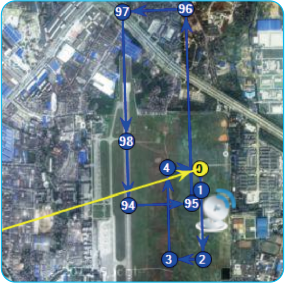 如图所示,显示了当前自动起飞和降落的飞行计划,此时用户可点击“起飞”菜单选项命令飞行器滑跑起飞,当完成飞行任务后,点击“降落”菜单选项命令飞行器进入降落航线并自主降落。