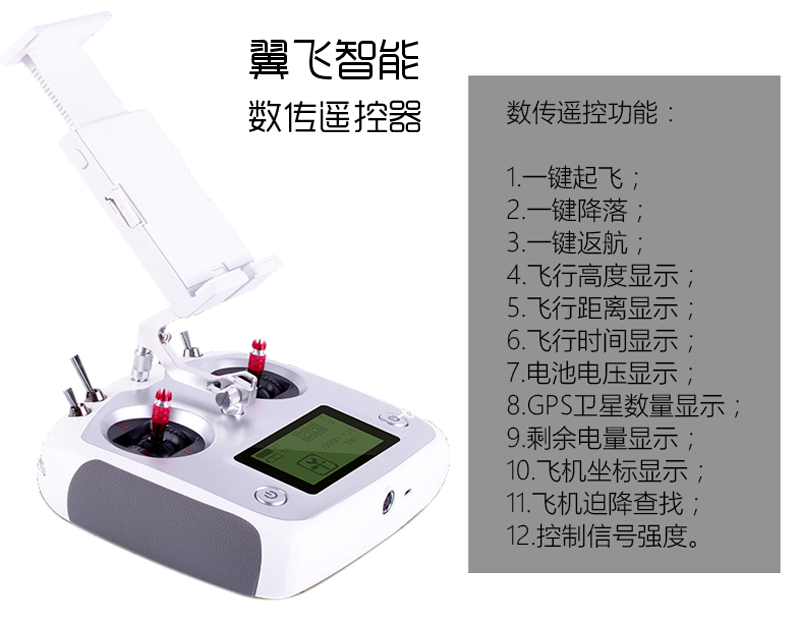 5.支持创新型数传遥控器,可实现双控接力飞行,当用数传遥控器飞行时,可实时掌控飞机关键信息。