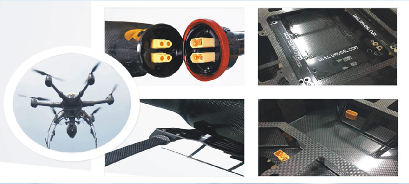 1.碳纤维湿法成型技术,一体成型工艺。 2.航空碳纤维材料,结构轻,强度高。 3.合理的电路布局设计,减少电流串扰。 4.全自主飞行,一键起降,垂直起降,不受场地限制。 5.支臂采用航空插直连接结构,快速拆装,利于携带,方便作业。