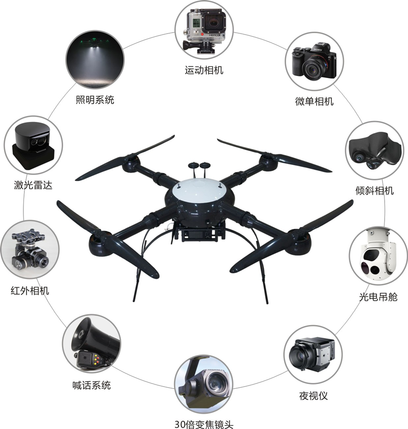 1.碳纤维湿法成型技术,一体成型工艺。 2.航空碳纤维材料,结构轻,强度高。 3.合理的电路布局设计,减少电流串扰。 4.全自主飞行,一键起降,垂直起降,不受场地限制。 5.支臂采用航空插直连接结构,快速拆装,利于携带,方便作业。