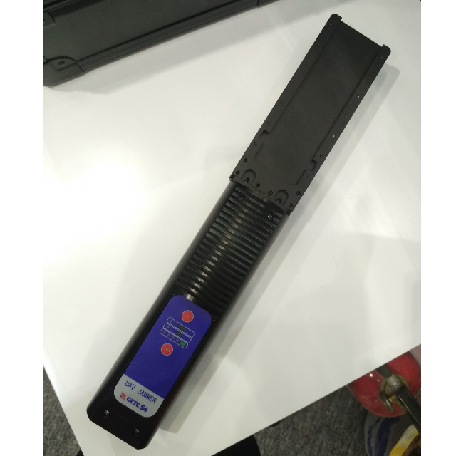 设备由手持式主机和电池组组成。手持式主机为三频段发射机天线一体化设计,可以同时产生2.4GHz/5.8GHz频段无人机飞控干扰信号以及卫星定位干扰信号,通过对无人机的上行飞控信道和卫星定位信道进行阻塞式干扰,从而使其失去飞控指令和卫星定位信息,使之无法正常飞行,根据无人机的设计不同会产生返航、降落以及坠落的管控效果。
