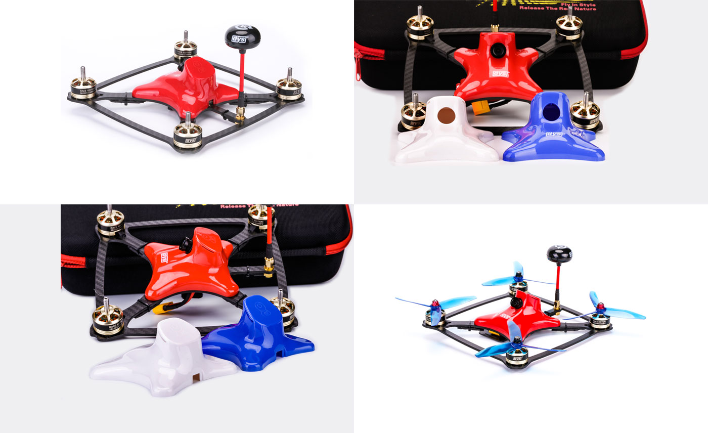 *框架带有两个盖子,可安装30°倾角FPV镜头或40°表面盖子,便于更换不同的视角。额外的白色30度表面覆盖DIY。