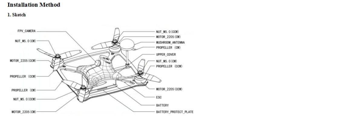 *框架采用重量轻,强度高,不变形的高档碳纤维材料。电机与电力系统的esc完美匹配。安装简单,用户可以顺利的飞行。