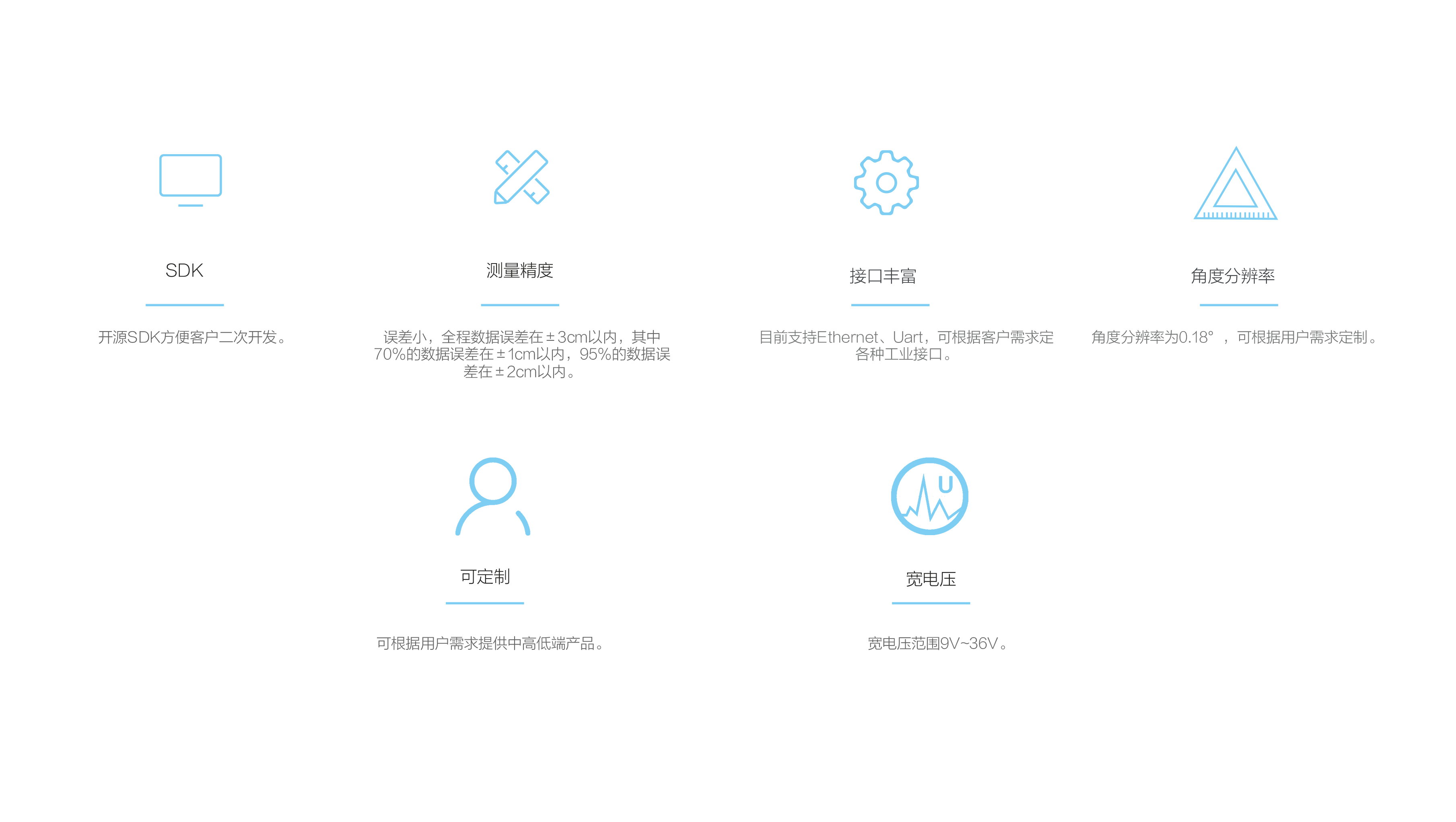N30101A采用TOF(Time of Fight)原理设计,对周边环境进行360°二维扫描探测。