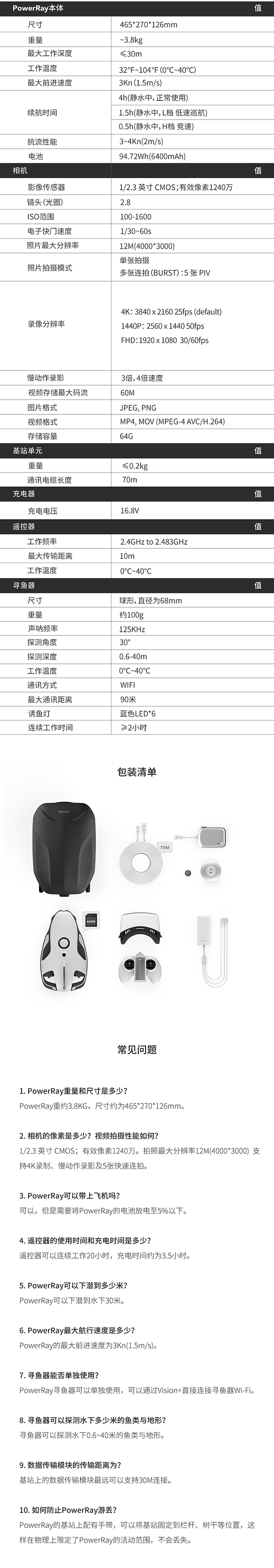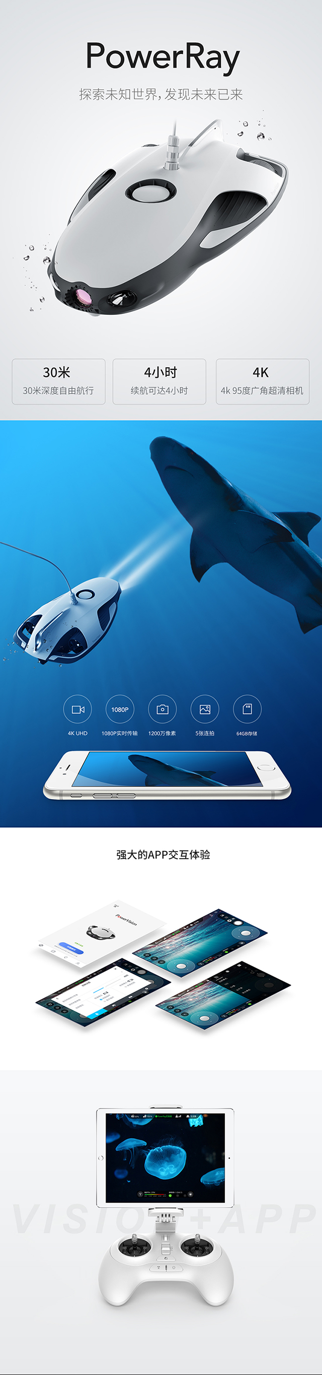 PowerRay小海鳐 4K相机 水下机器人 VR眼镜