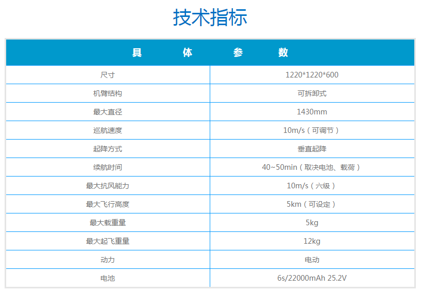 ■ 长续航时间六旋翼无人机:续航时间可达40-50min;