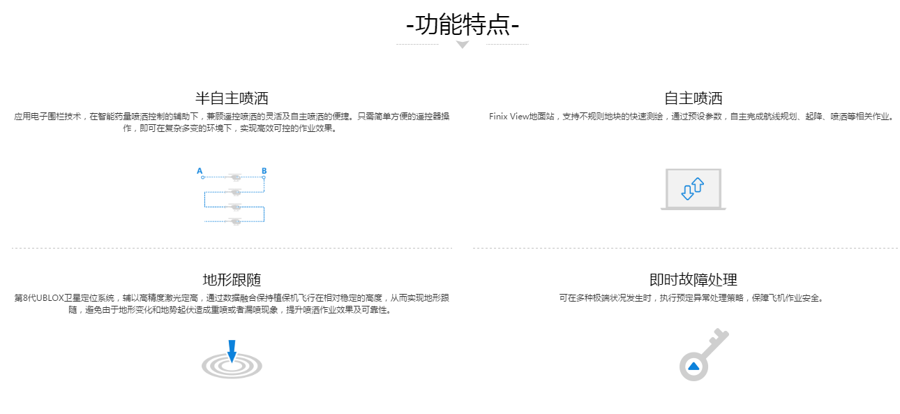 采用分布式设计,支持丰富的可选功能模块。同时兼容植保行业主流的各种油动、电动直升机飞行平台。