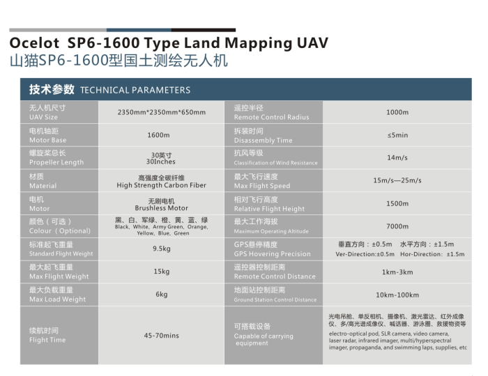 星空创新 山猫SP6-1600W型电力巡线无人机