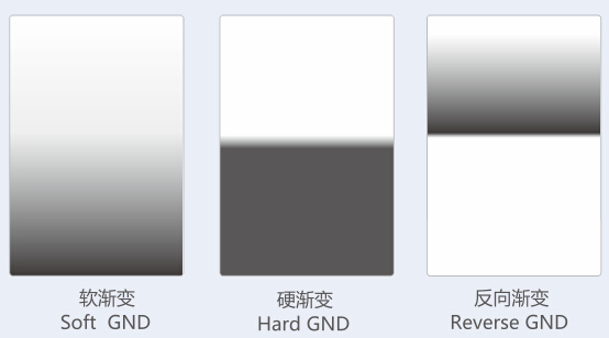 1. GND 渐变镜主要分为 HARD 硬边, SOFT 软边2种,硬边主要用于海景,软边试用于山景。