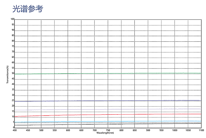 我司的无反光ND镜采用光学玻璃表面进行光学镀膜加工,可以保证光波具有平整的光谱响应,并且在一般条件下不容易老化,可实现从紫外到近红外范围的均匀衰减,并且可以做到无反光。能同时具有有色玻璃ND镜与普通镀膜nd镜的特点。在拥有有色玻璃的低反射特性情况下,衰减值可灵活定制在OD0.1~OD5范围的不同衰减值。常规的尺寸有:46mm、52mm、55mm、58mm、67mm、72mm、77mm、82mm