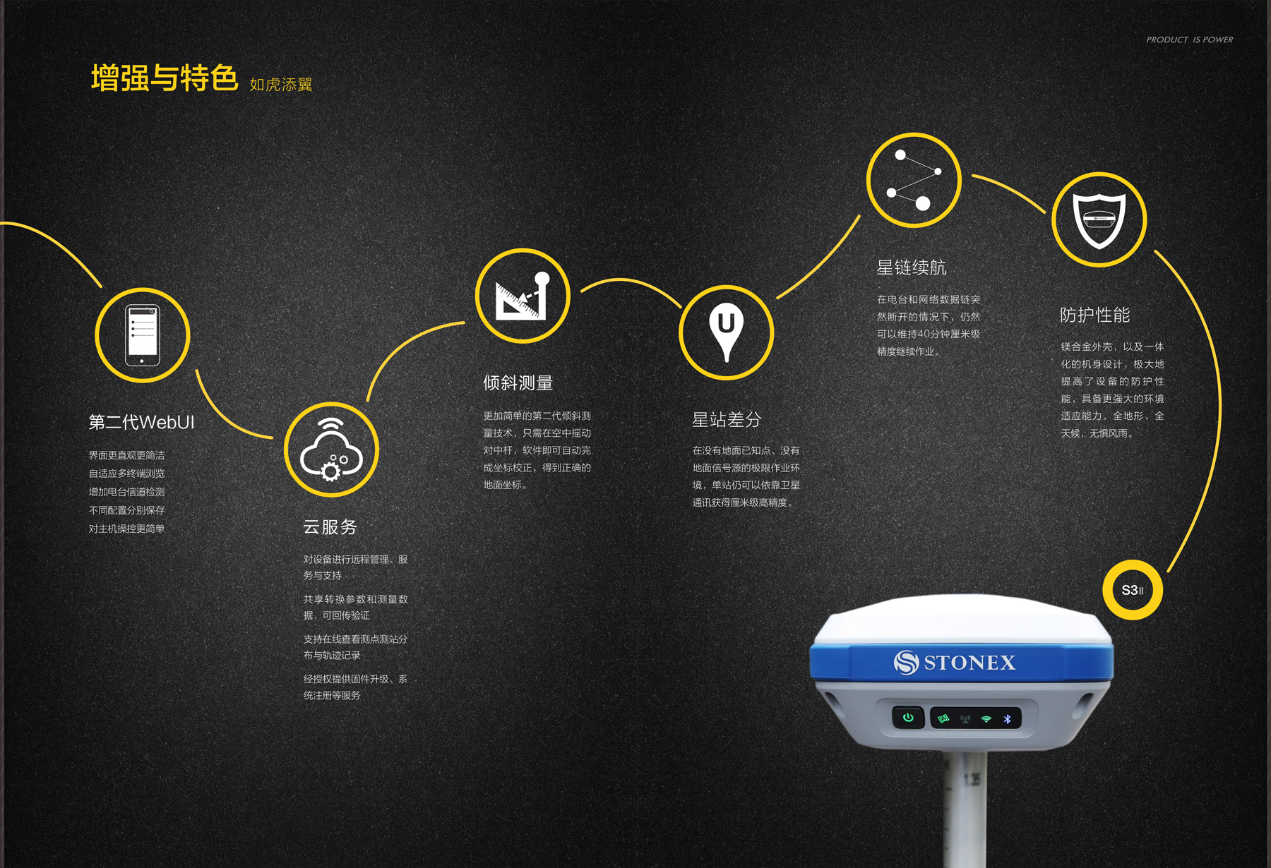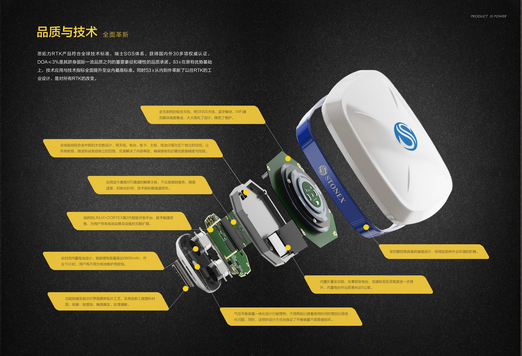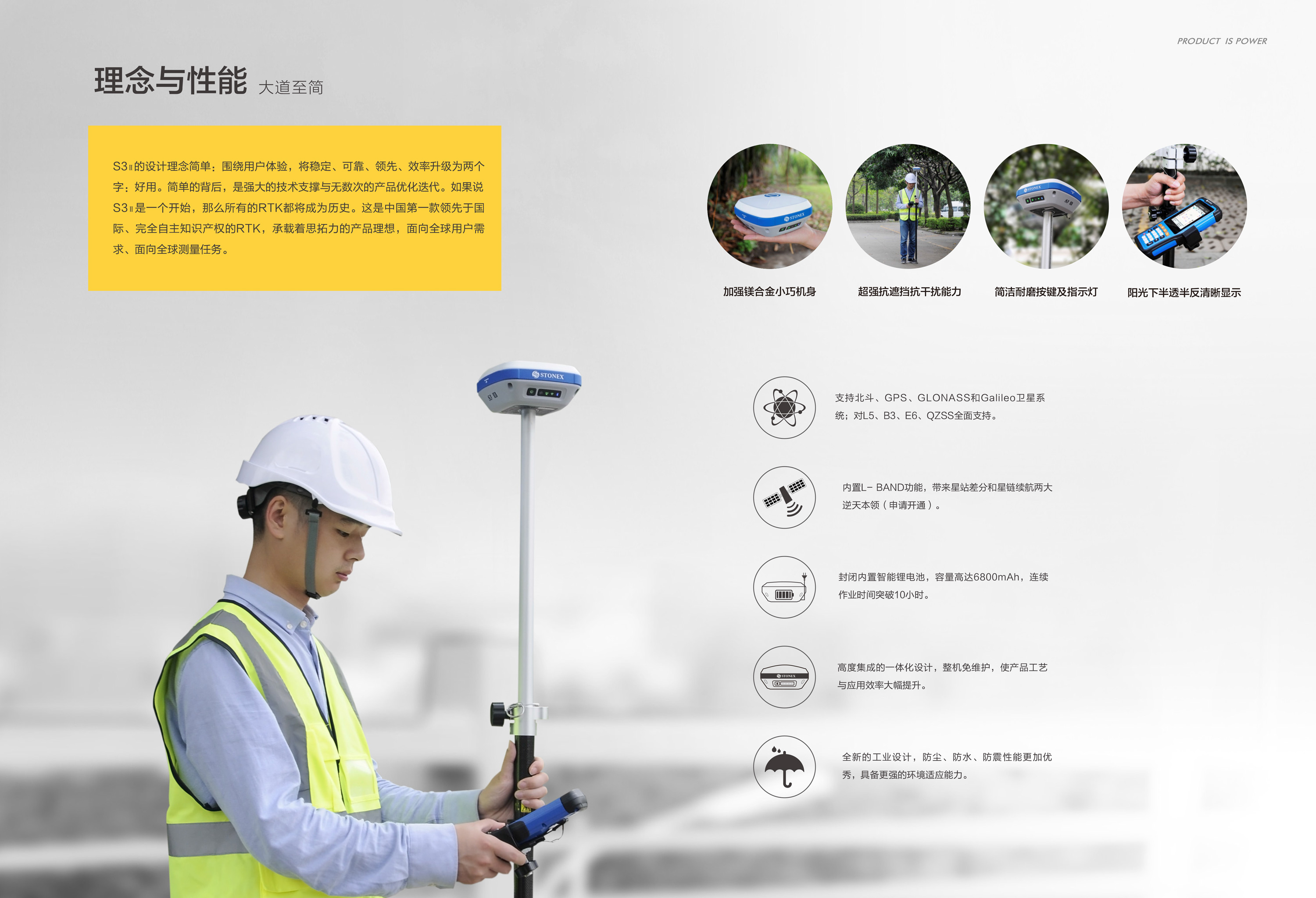 S3Ⅱ的设计理念简单:围绕用户体验,将稳定、可靠、领先、效率升级为两个字:好用。简单的背后,是强大的技术支撑与无数次的产品优化迭代。如果说S3Ⅱ是一个开始,那么所有的RTK都将成为历史。这是中国第一款领先于国际、完全自主知识产权的RTK,承载着思拓力的产品理想,面向全球用户需求、面向全球测量任务。