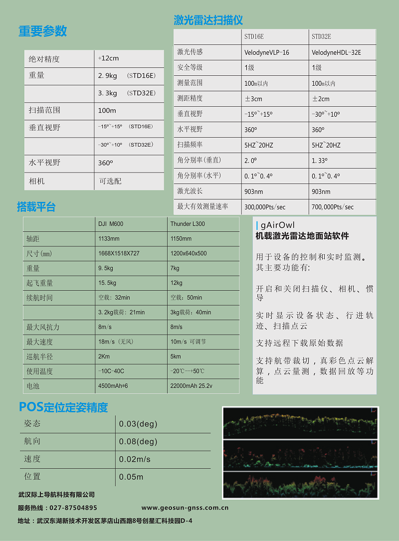 gAirOwl 空中鹰是由际上导航自主研发的轻型激光雷达点云数据采集系统,集成了激光雷达扫描仪、GNSS和IMU定位定姿系统及存储控制单元,可实时、动态、海量采集高精度点云数据及丰富的影像信息。广泛应用于测绘、电力、林业、农业、国土规划、地质灾害、矿山安全等领域三维空间信息的获取。
