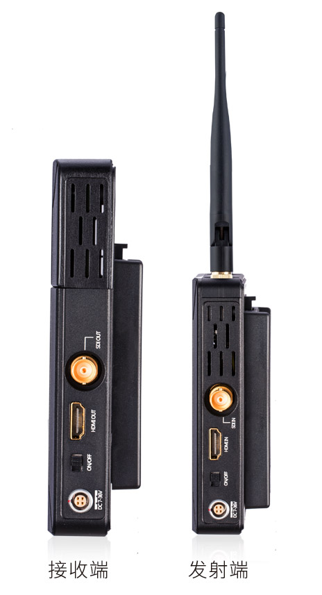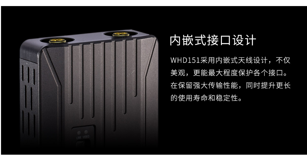WHD151发射端和接收端均为小巧型设计,发射端和接收端都具有用于安装到摄像机的上1/4"-20孔,而且配备索尼F970电池扣板(标配),可直接安装标准F970电池进行供电。除了电池供电,发射端和接收端皆可通过4-PIN LEMO DC接口供电,电压在7-36V范围内。
