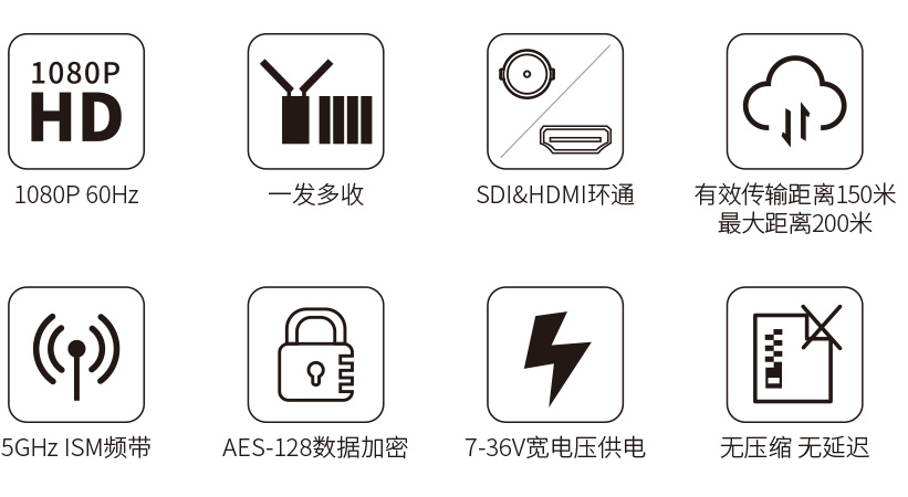 SDI/HDMI无压缩传输,传输延时≤1毫秒